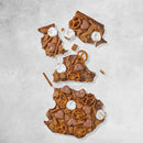 قطعة شوكولاتة حليب غنية ممزوجة بزبدة الفول السوداني الكريمية، مليئة بالبريتزل المملح، وبسكويت غراهام، ورشات ذهبية، ومحشوة بمارشميلو الفانيليا والشوكولاتة الفاخرة. حلوة، مالحة، ومُدمن عليها بشكل لا يُقاوم. ٥٠ غرامًا من الدلال تأخذك في رحلة لا تُنسى.
