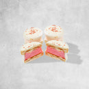 حلوى مرحة تجمع بين المالح والحلو — بسكويت مالح ومقرمش محشو بمارشميلو الفراولة الفاخر والناعم، ومغطى بشوكولاتة بيضاء حريرية. مقرمشة، لزجة، ولا تقاوم!