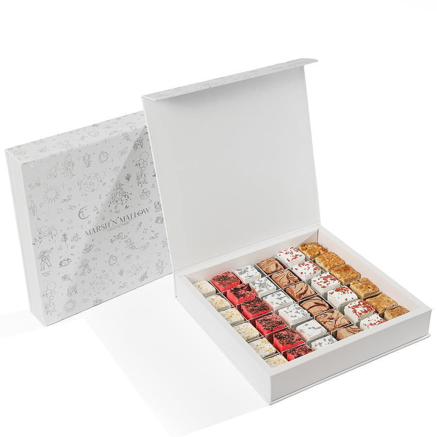 A large collection of our premium items, featuring our gourmet marshmallows nestled in a star gift box of 24, choco rocky roads, lotus rocky roads, 2 tarts of your choice,...